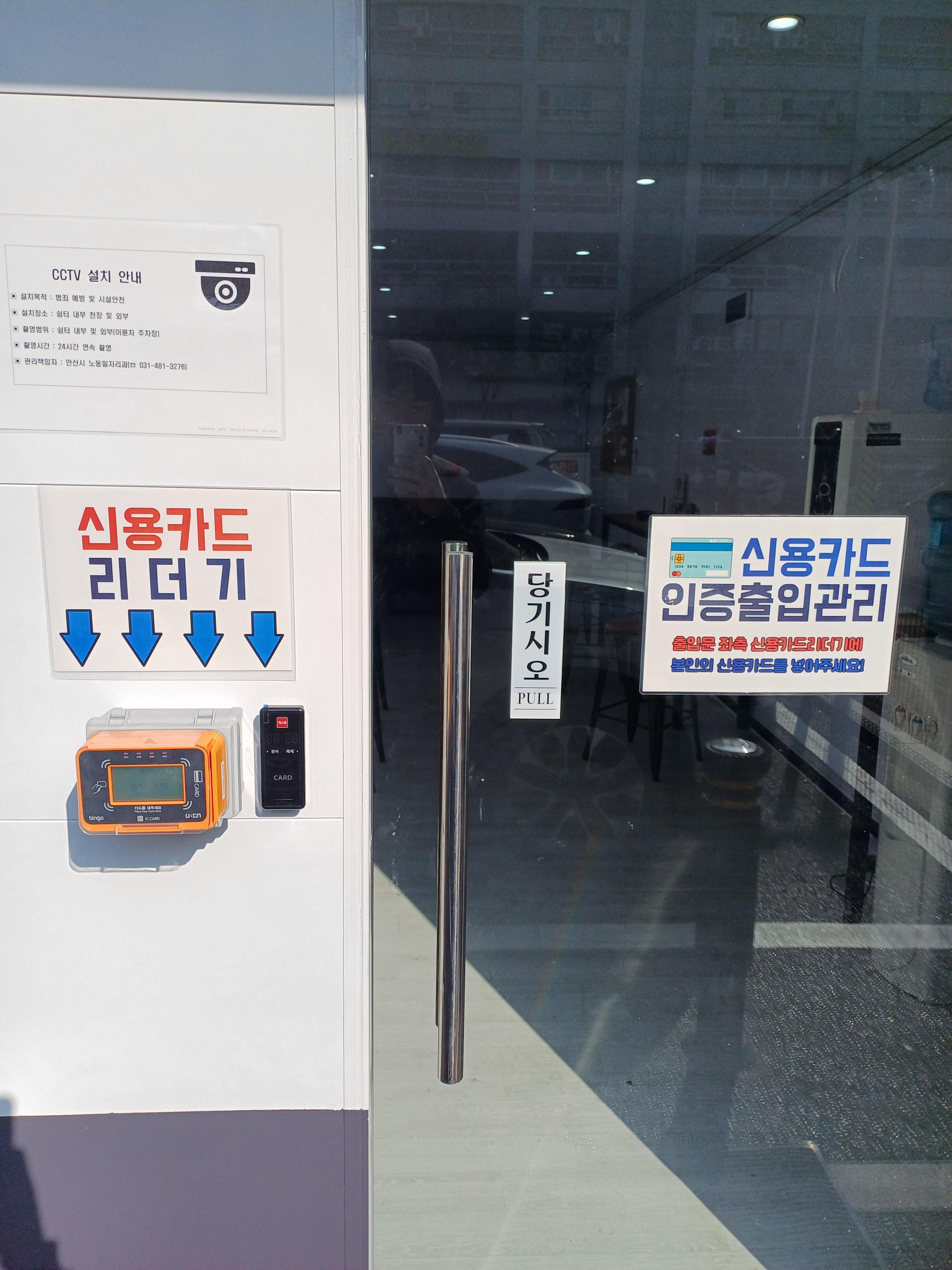 신용카드 리더기에 카드를 꼽으면 문이 열리게됩니다.